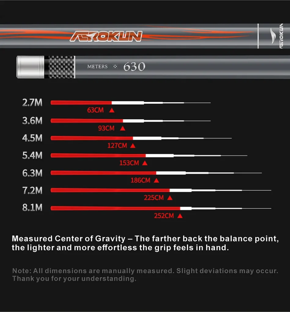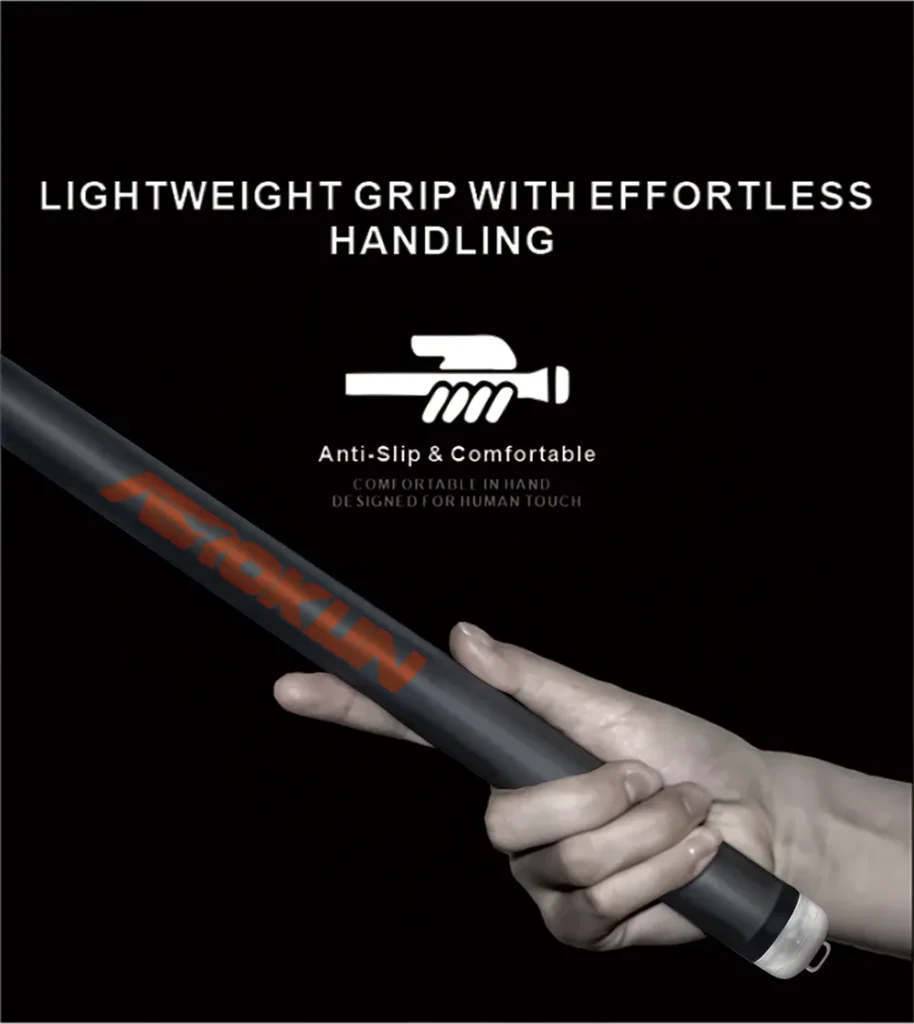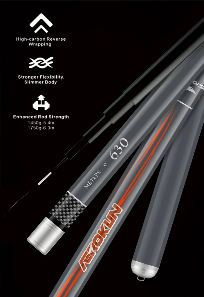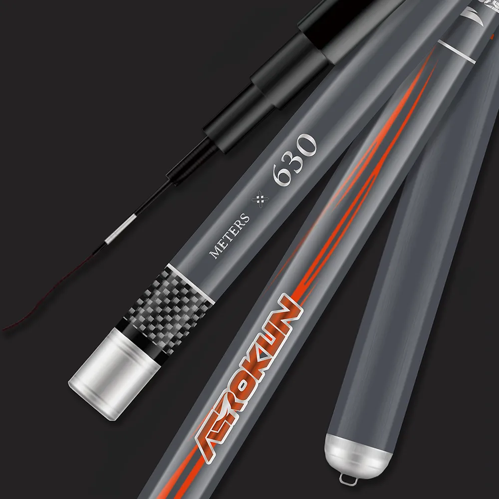 The AEROKUN carbon fiber fishing rod is crafted from high-strength carbon fiber, offering a perfect balance of lightness and durability. Designed for anglers who seek precision and control, it features a 3:7 action ratio, providing excellent flexibility and casting accuracy. This rod is suitable for both freshwater and saltwater fishing, meeting the needs of various fishing conditions. The rod comes in two net catch weight options: the 5.4m model weighs 1450g, while the 6.3m model weighs 1750g. Whether you're a beginner or an experienced angler, the AEROKUN fishing rod ensures a comfortable and efficient fishing experience.